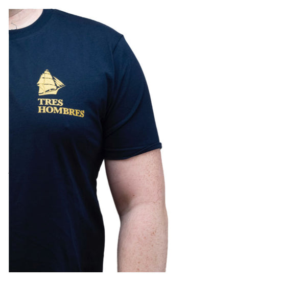 This navy blue garment will leave memories that will last forever (also available in black and burgundy red). It is a valuable collector's item for true enthusiasts of the sailing freighter the Tres Hombres. The Caribbean flavors just taste better when you wear this beautifully designed T-shirt.